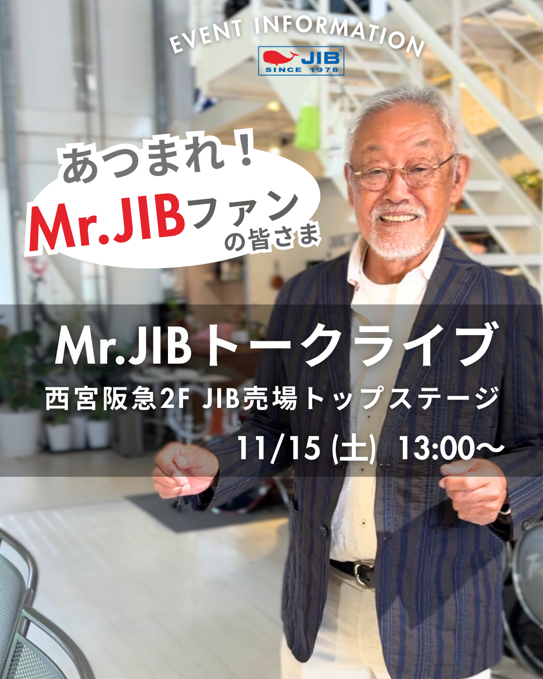 2025.11.06 1 Post Share Hatena Pocket RSS feedly Pin it 関連記事 自治体アワード Bronze受賞 ☆JIB Group Info☆20/9/28~【重要】JIB本店・船坂店限定カラーオーダーサービス休止... ●Event Info●21/11/13(土)西宮阪急にてJIB創業者トークショーのご案内 “LOVE FOR ALL” JIB的支援活動、中間報告 ●Event Info●24/8/14~横浜高島屋にてJIBフェア開催! JIB誕生秘話(6回連載)その3 ●Event Info●23/7/12~ 泉北タカシマヤにてJIBフェア開催 ●Event Info●21/7/7~ 川西阪急にてJIBフェア開催!